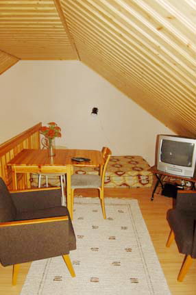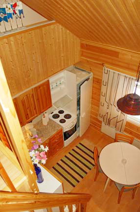 Hyvätasoiseen rivitalohuoneistoon voi majoittua 4-5 henkilöä. Huoneistossa on yksi erillinen makuuhuone sekä parvi, jossa on kaksi runkopatjaa. Pinta-ala on yhteensä n. 60 m2. Olohuoneessa on varaava takka, sauna on sähkölämmitteinen. Huoneistoon kuuluu myös paikka autokatoksessa.